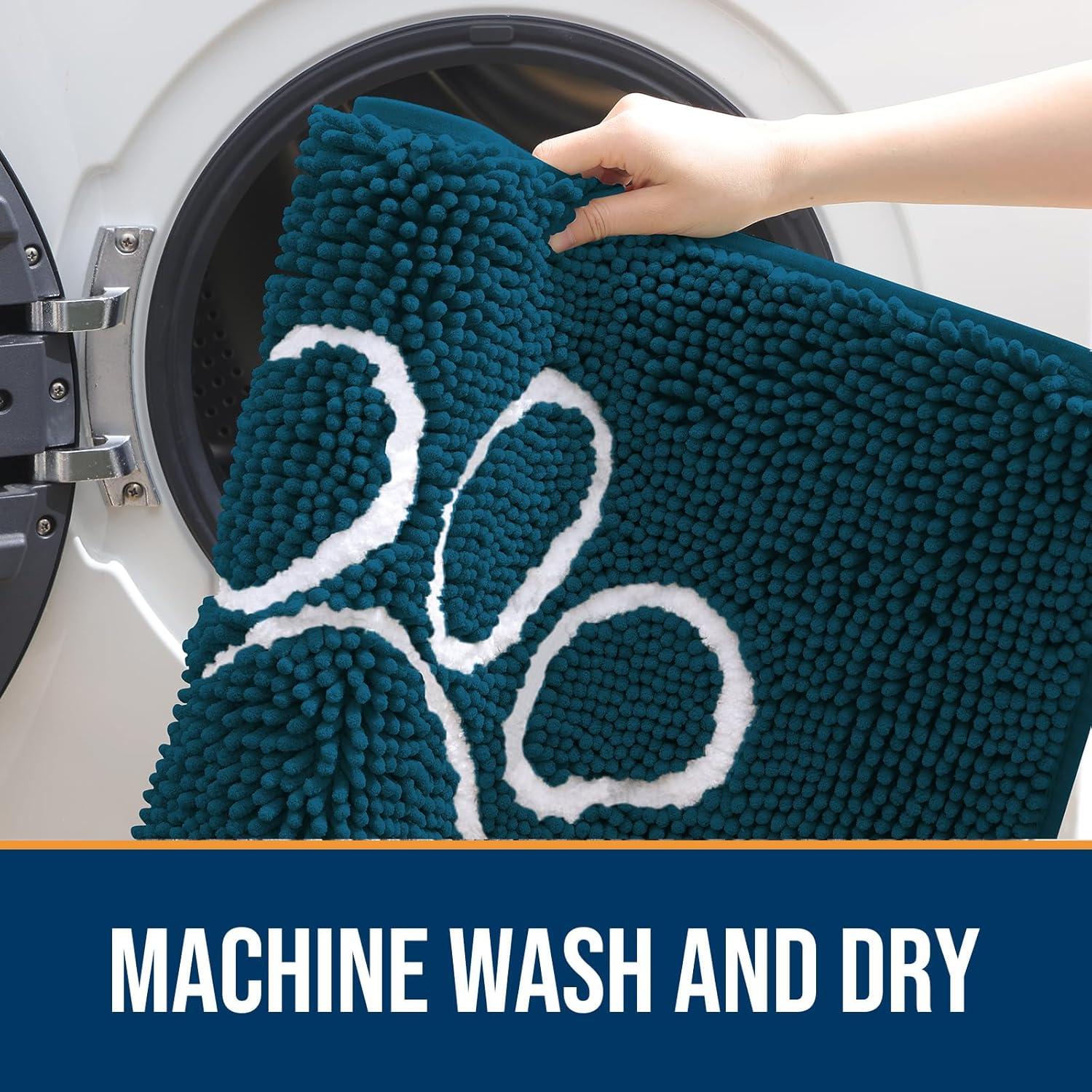 OLANLY Dog Door Mat for Muddy Paws 32×20, Paw Print Design, Absorbs Moisture and Dirt, Absorbent Non-Slip Washable Doormat, Quick Dry Chenille Mud Mat, Entry Indoor Entryway Carpet, Atlantic Blue