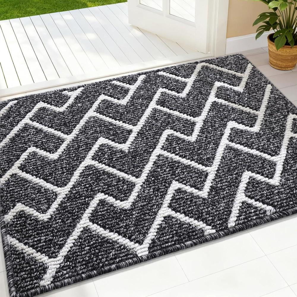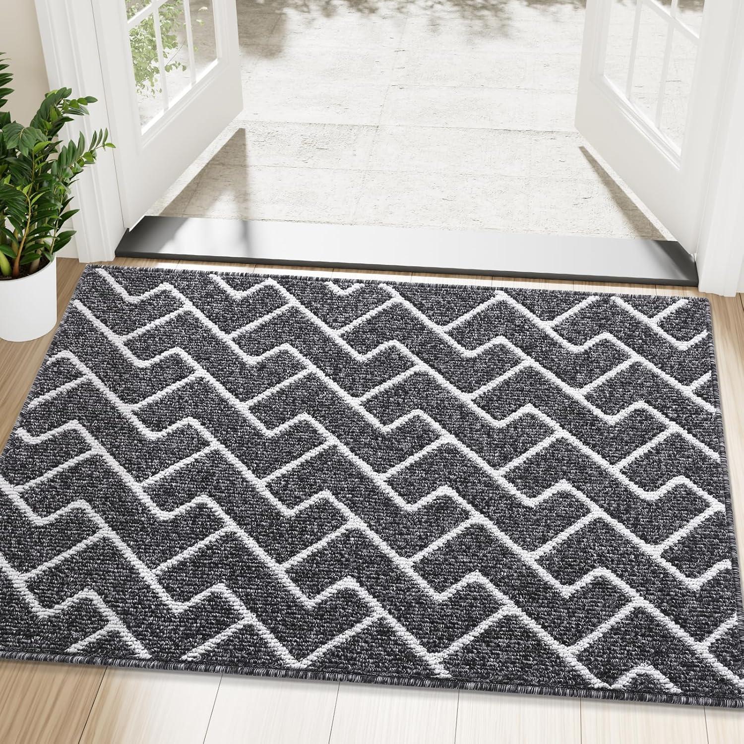 OLANLY Front Door Mat, Non-Slip Rubber Backing, Dirt Resistant and Absorbent, Washable, Easy to Clean Low-Profile Indoor Doormat for Back Door, Entryway, Inside Entrance, 32×20, Grey(Black)