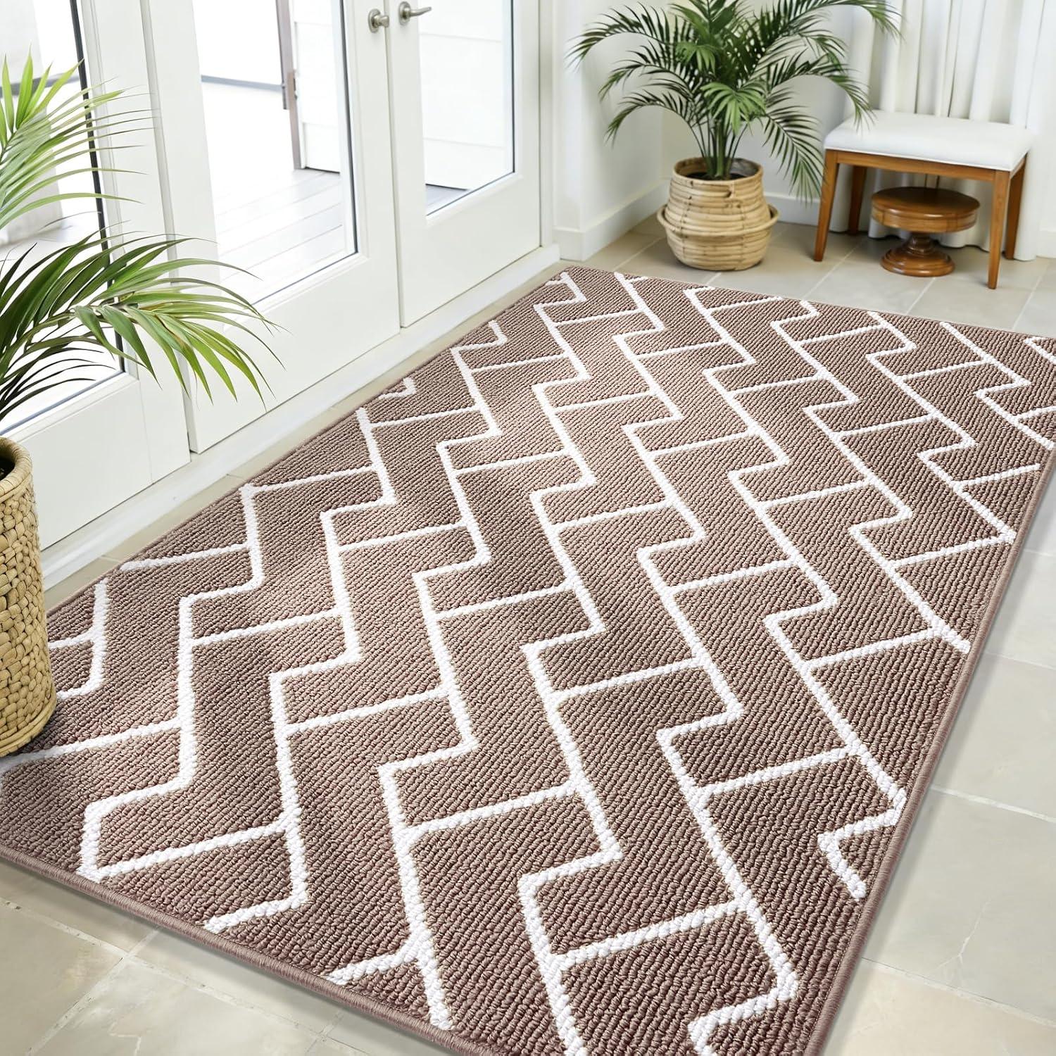 [MODERN GEOMETRIC STYLE] Enhance your entrance with the fashionable and modern geometric patterns of the OLANLY indoor door mat, complementing any decoration and blending seamlessly with modern decor. It adds a subtle sense of delicacy.