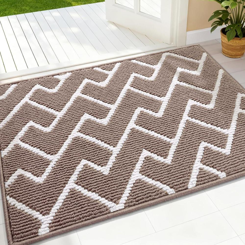 OLANLY Front Door Mat, Non-Slip Rubber Backing, Dirt Resistant and Absorbent, Washable, Easy to Clean Low-Profile Indoor Doormat for Back Door, Entryway, Inside Entrance, 32×20, Grey(Brown)