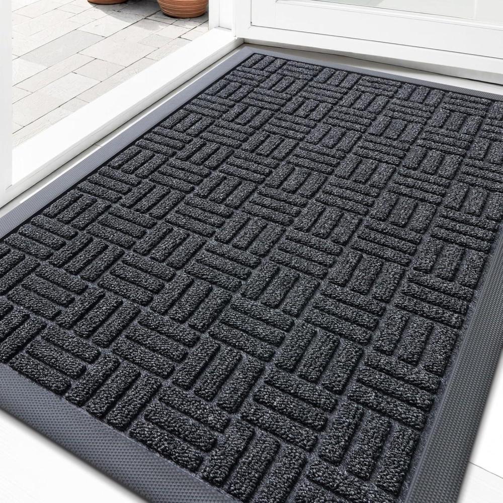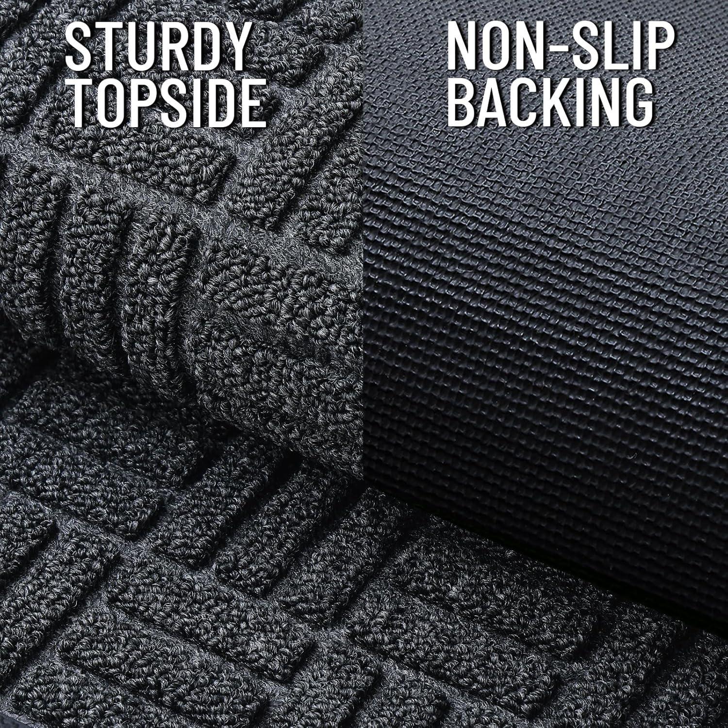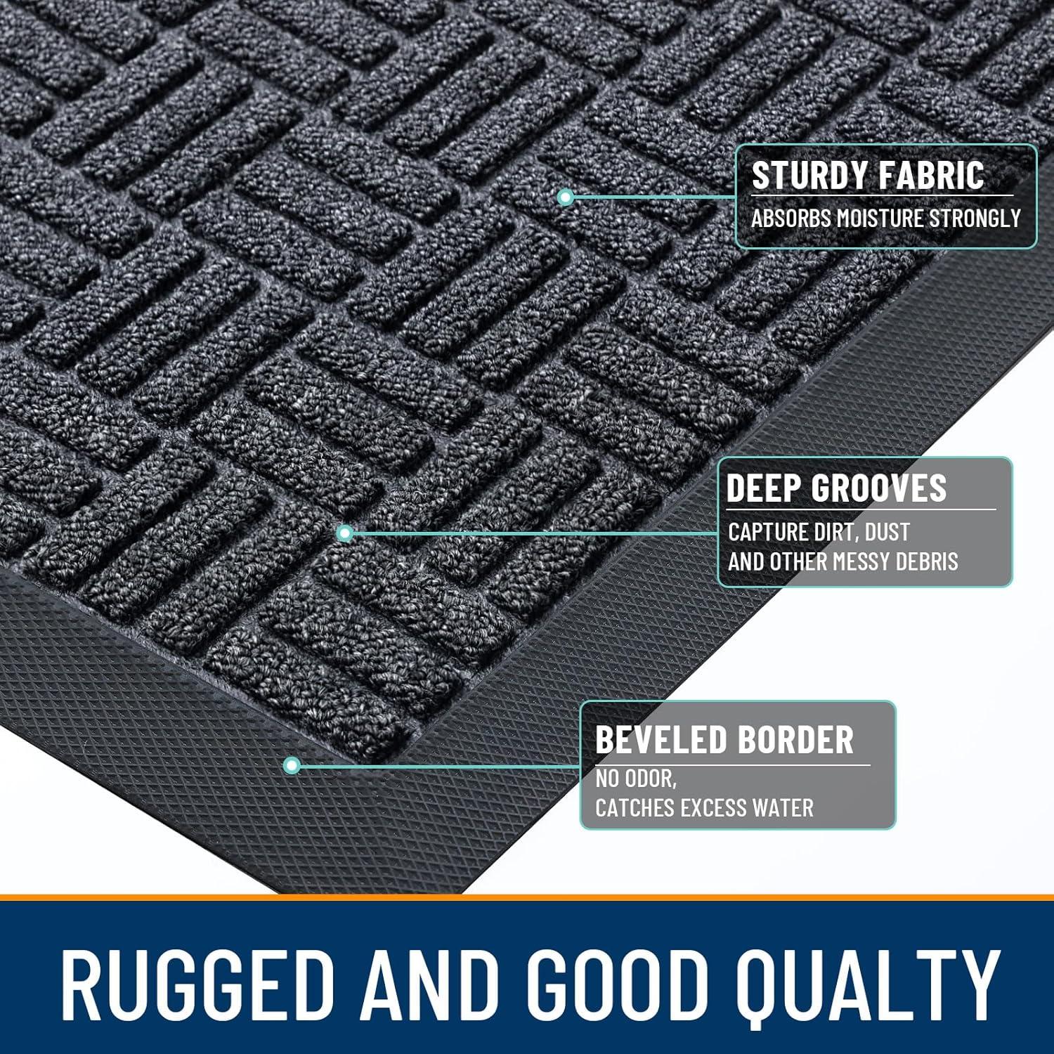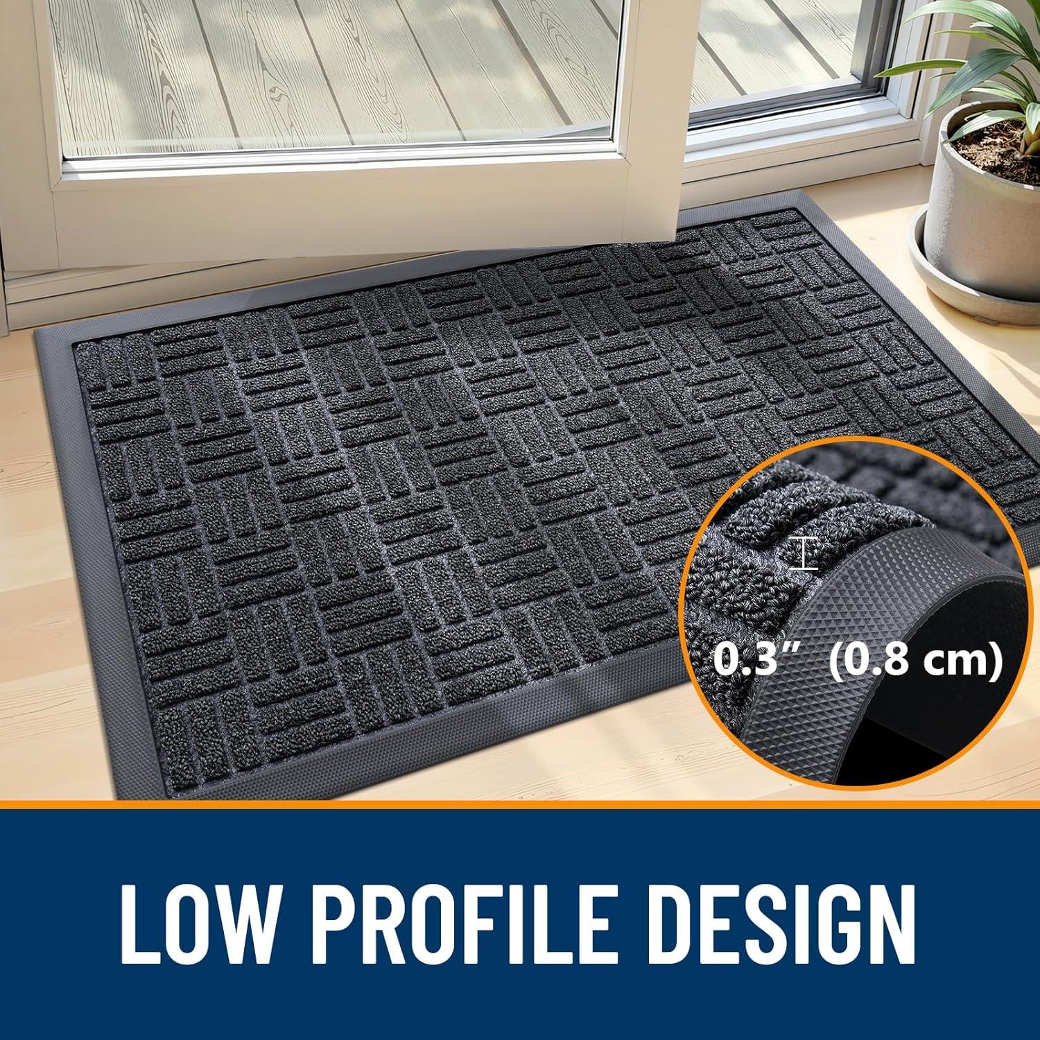 OLANLY Front Door Mat Outside Entrance 29×17, Absorbent, Heavy Duty Sturdy Natural Rubber Doormat Indoor Outdoor, Stain and Fade Resistant, Non-Slip Backing Low Profile Floor Mat for Entryway, Grey(Black)