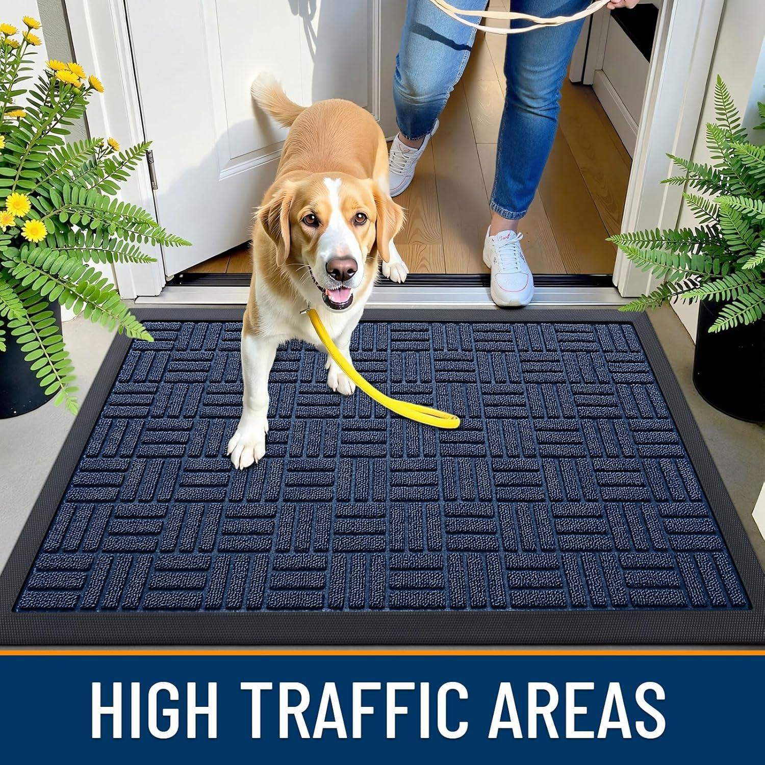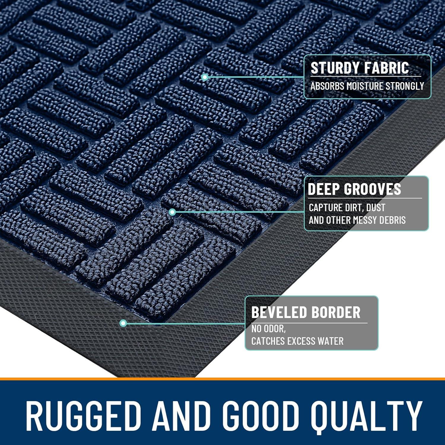 OLANLY Front Door Mat Outside Entrance 29×17, Absorbent, Heavy Duty Sturdy Natural Rubber Doormat Indoor Outdoor, Stain and Fade Resistant, Non-Slip Backing Low Profile Floor Mat for Entryway, Grey(Navy Blue)