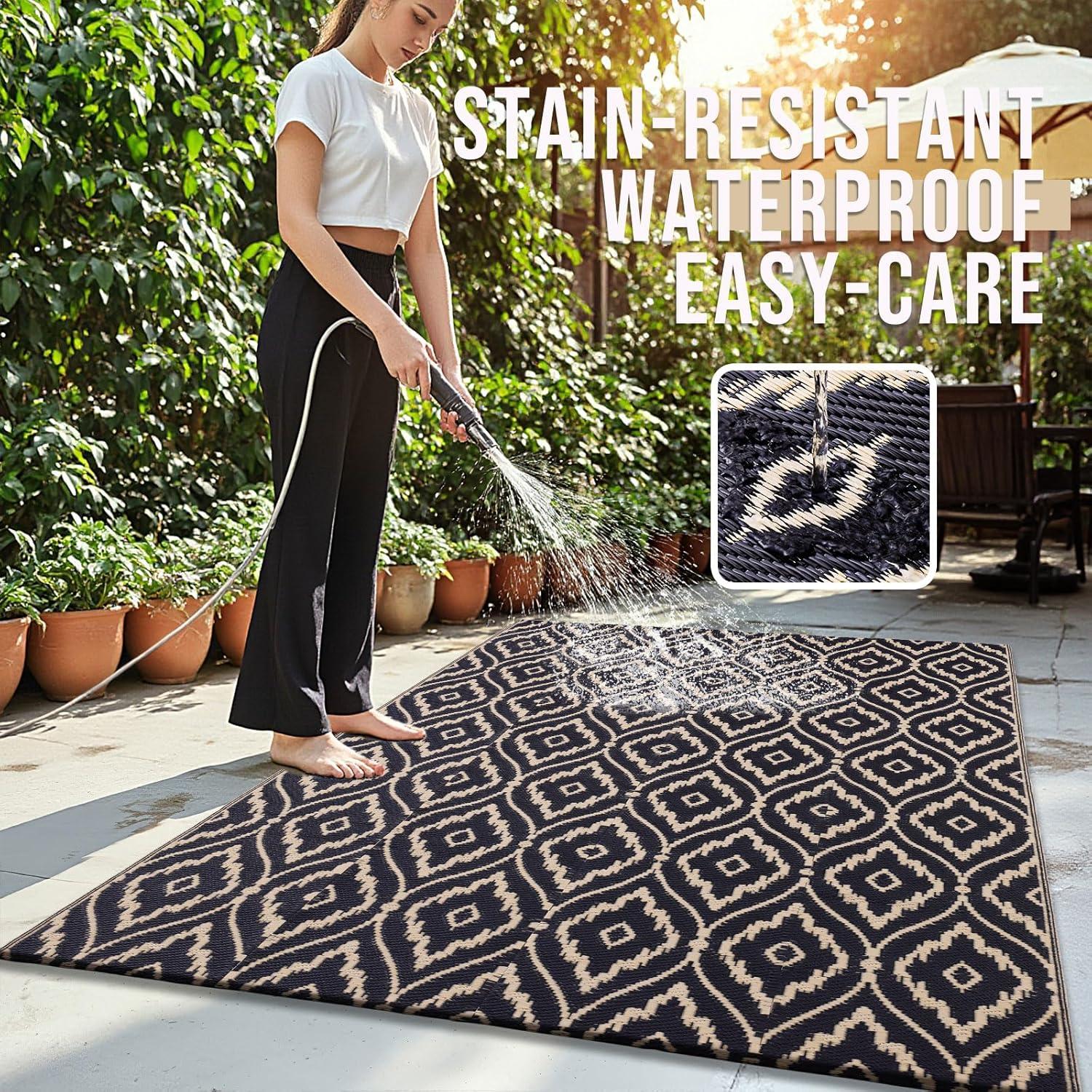UV-Resistant & Built to Last: With a UV-protective coating, this outdoor patio rug resists color fading, maintaining its vibrant look for years. Reinforced edges provide exceptional durability, making it ideal for frequent use in all weather conditions, whether at home or on the go.