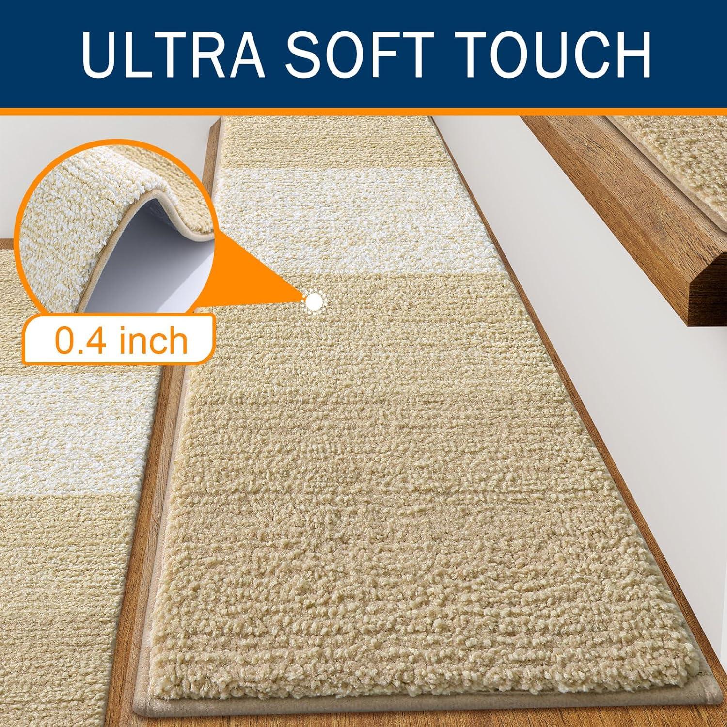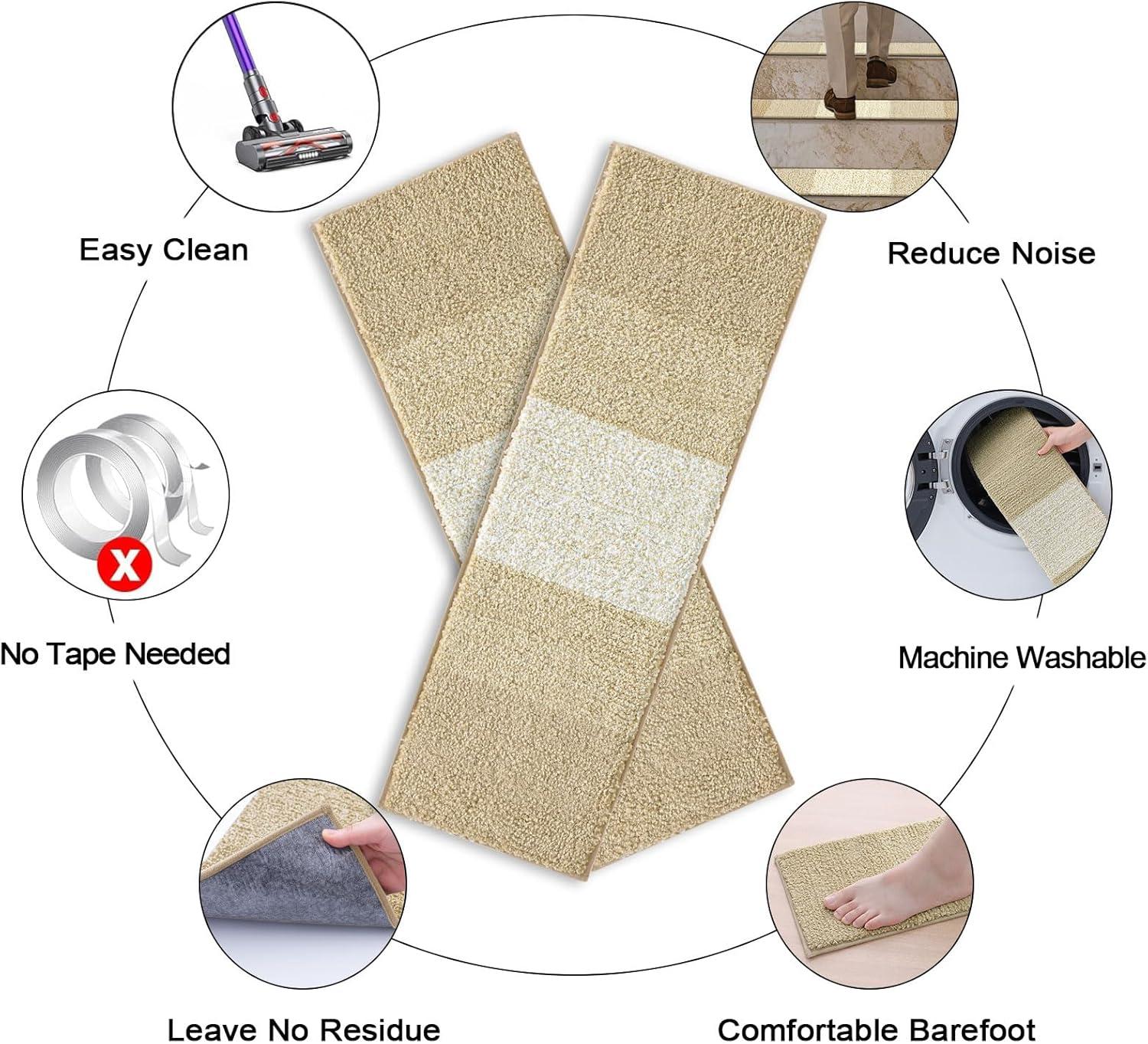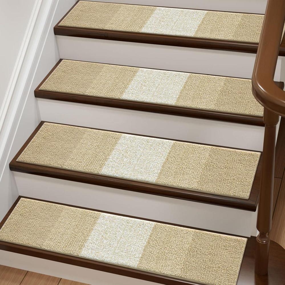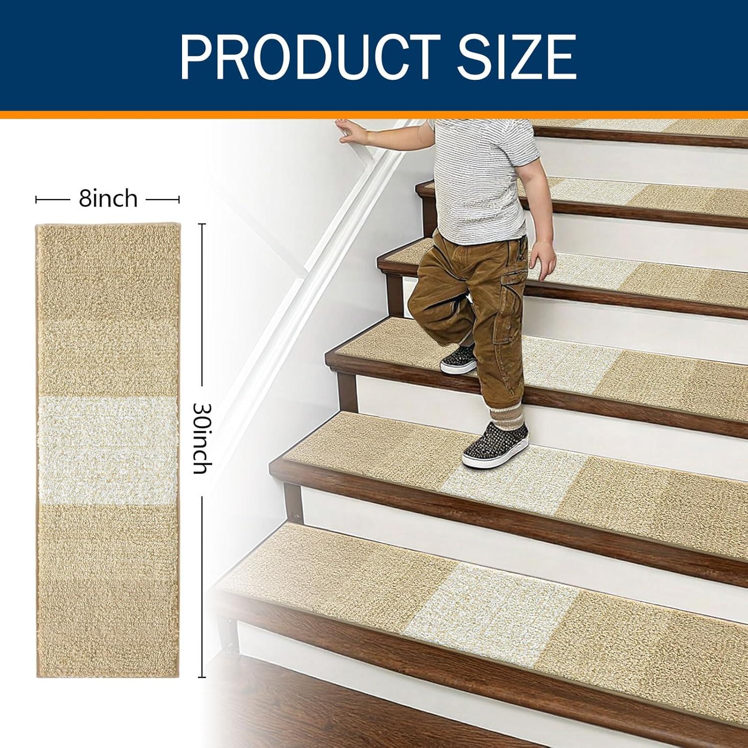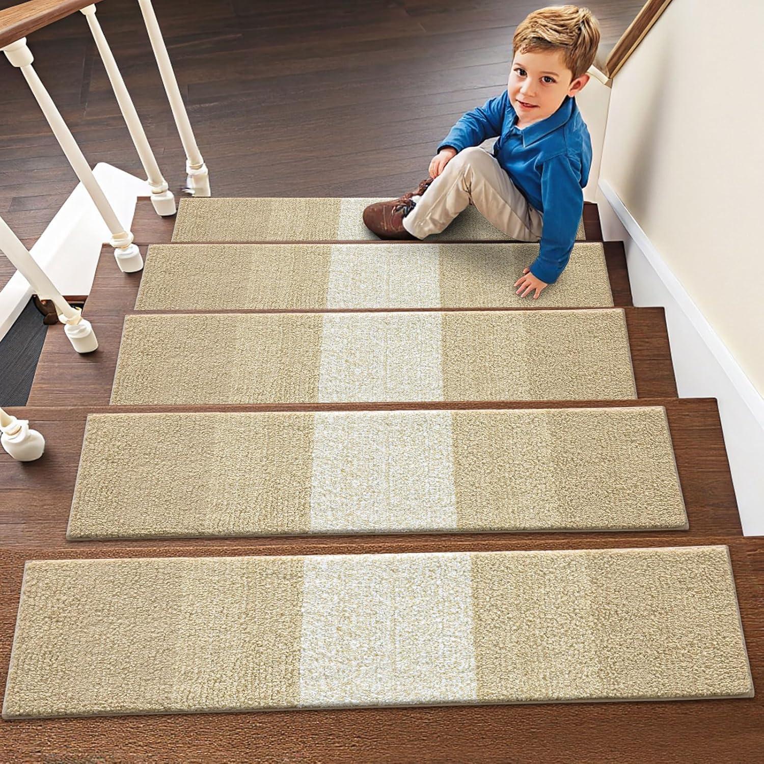 OLANLY Stair Treads Non Slip 15PCS, 8″ x 30″ Indoor Stair Runners for Wooden Steps, Edging Stair Rugs with Reusable Peel and Stick Adhesive for Kids Elders and Pets, Black(Beige)
