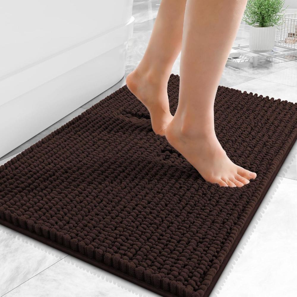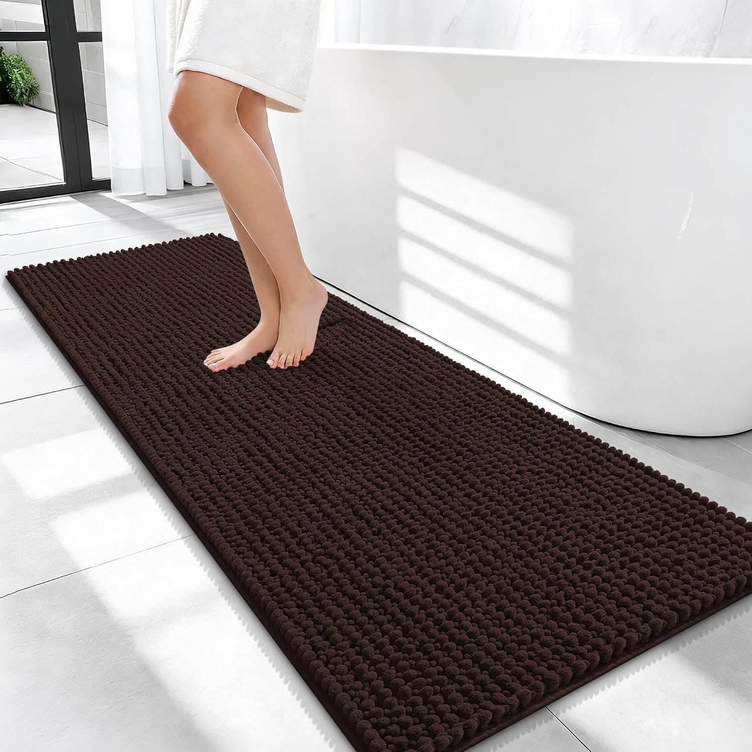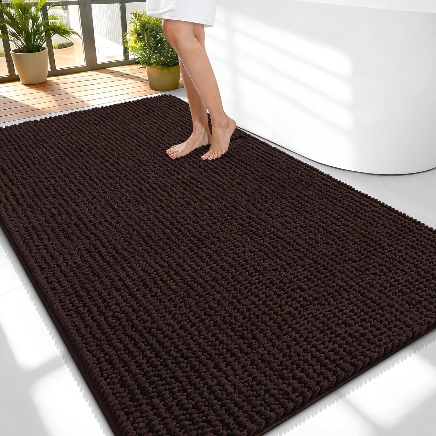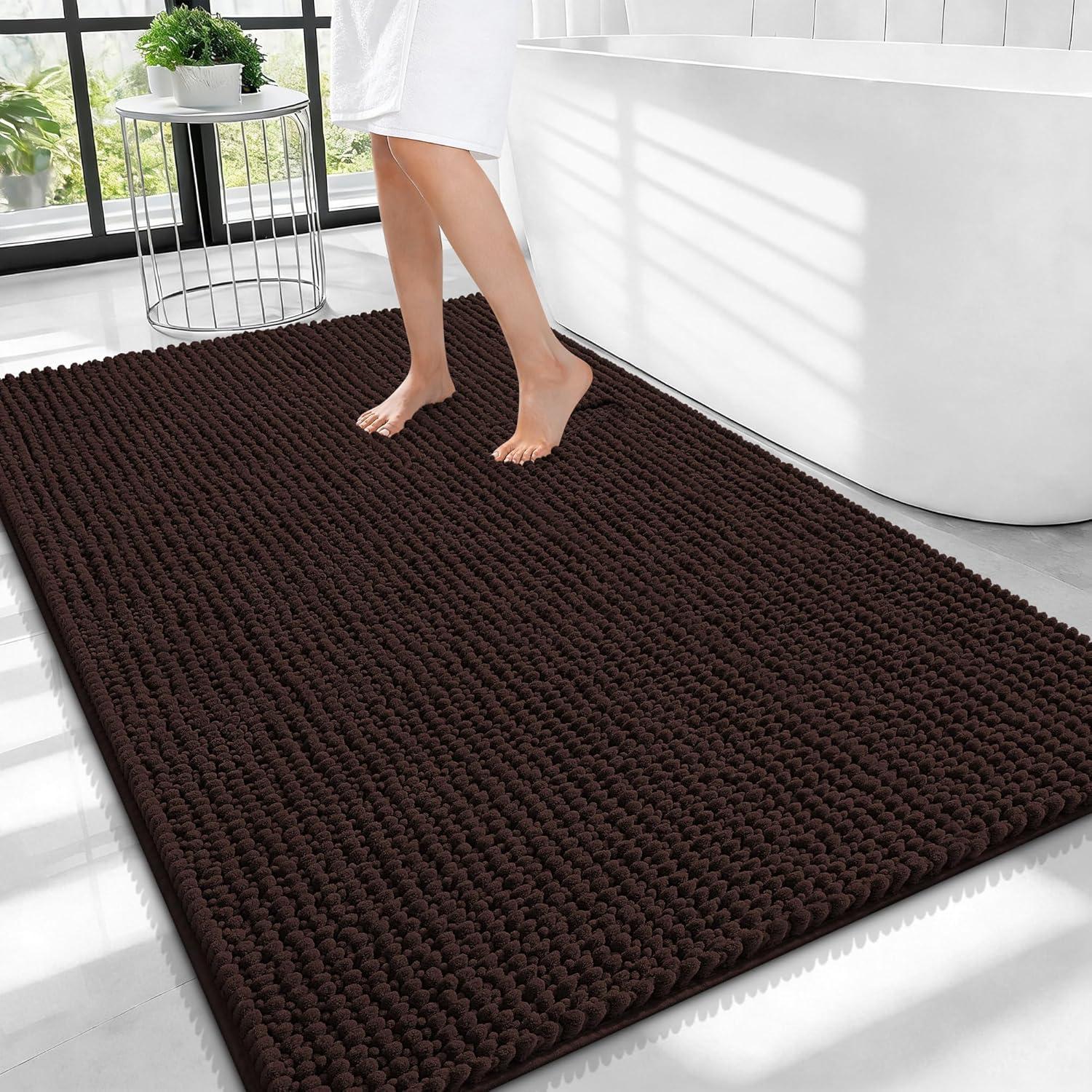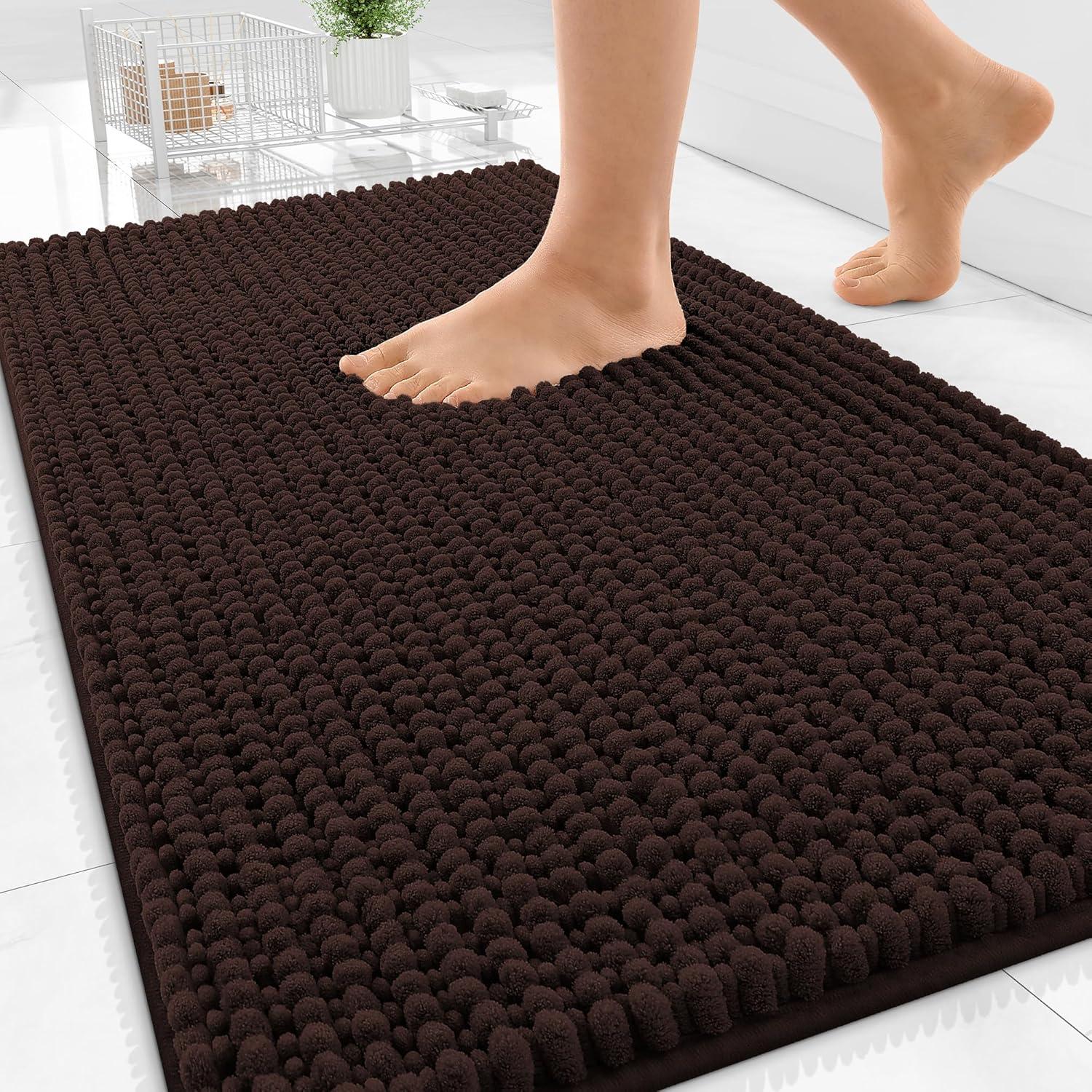 OLANLY Thick Bathroom Rugs 30×20, Extra Soft Absorbent Chenille Bath Rugs, Rubber Backing, Machine Wash Dry, Bath Mats for Bathroom Floor, Tub and Shower, Home Decor Accessories, Grey(Brown)