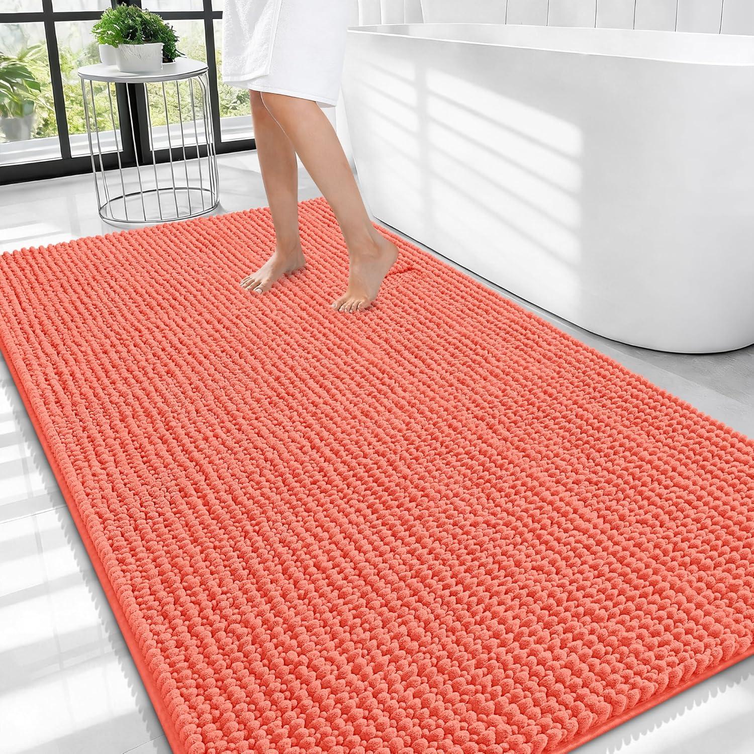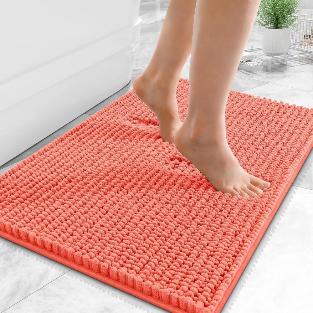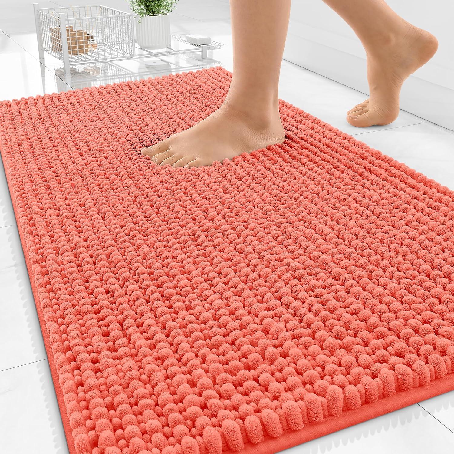 OLANLY Thick Bathroom Rugs 30×20, Extra Soft Absorbent Chenille Bath Rugs, Rubber Backing, Machine Wash Dry, Bath Mats for Bathroom Floor, Tub and Shower, Home Decor Accessories, Grey(Coral)