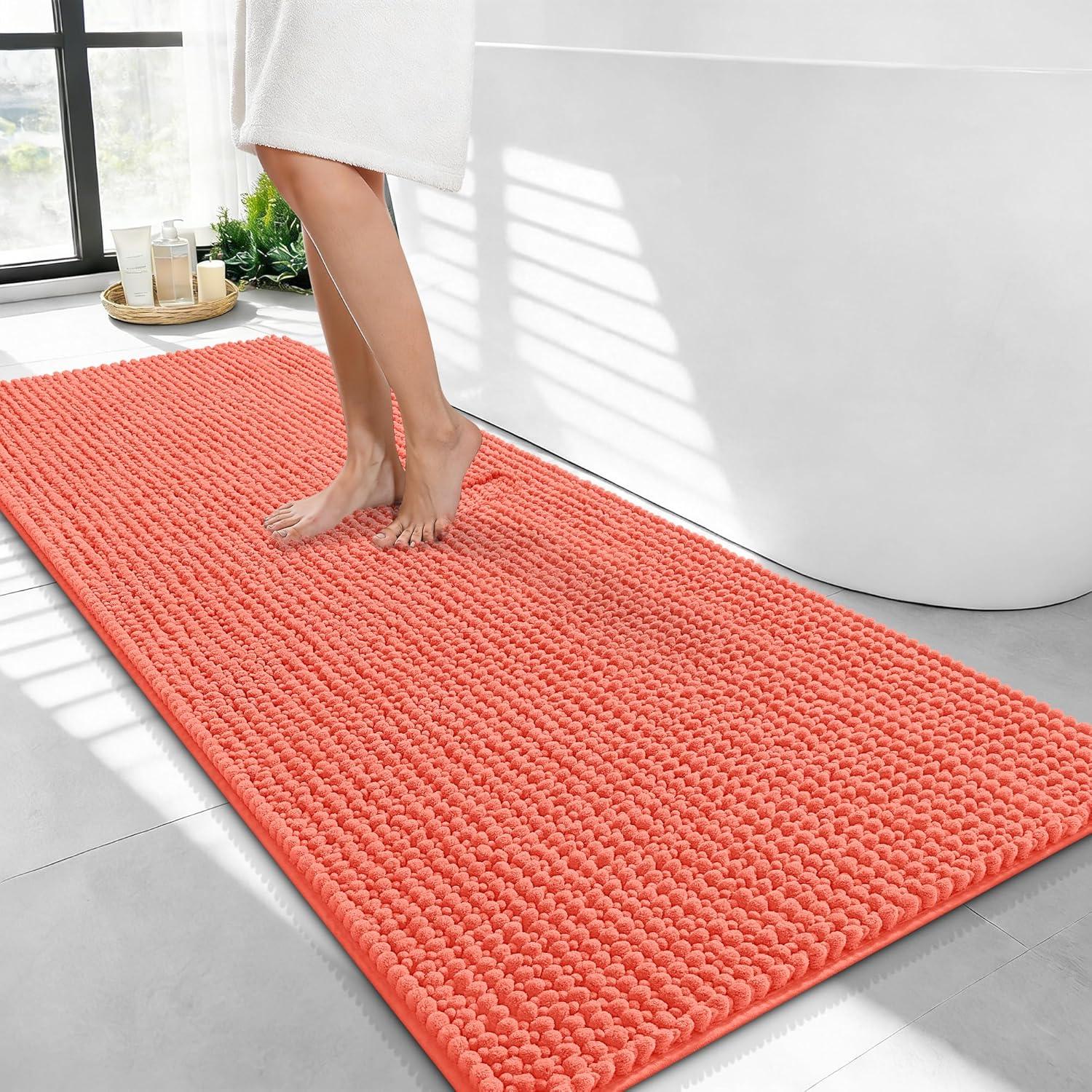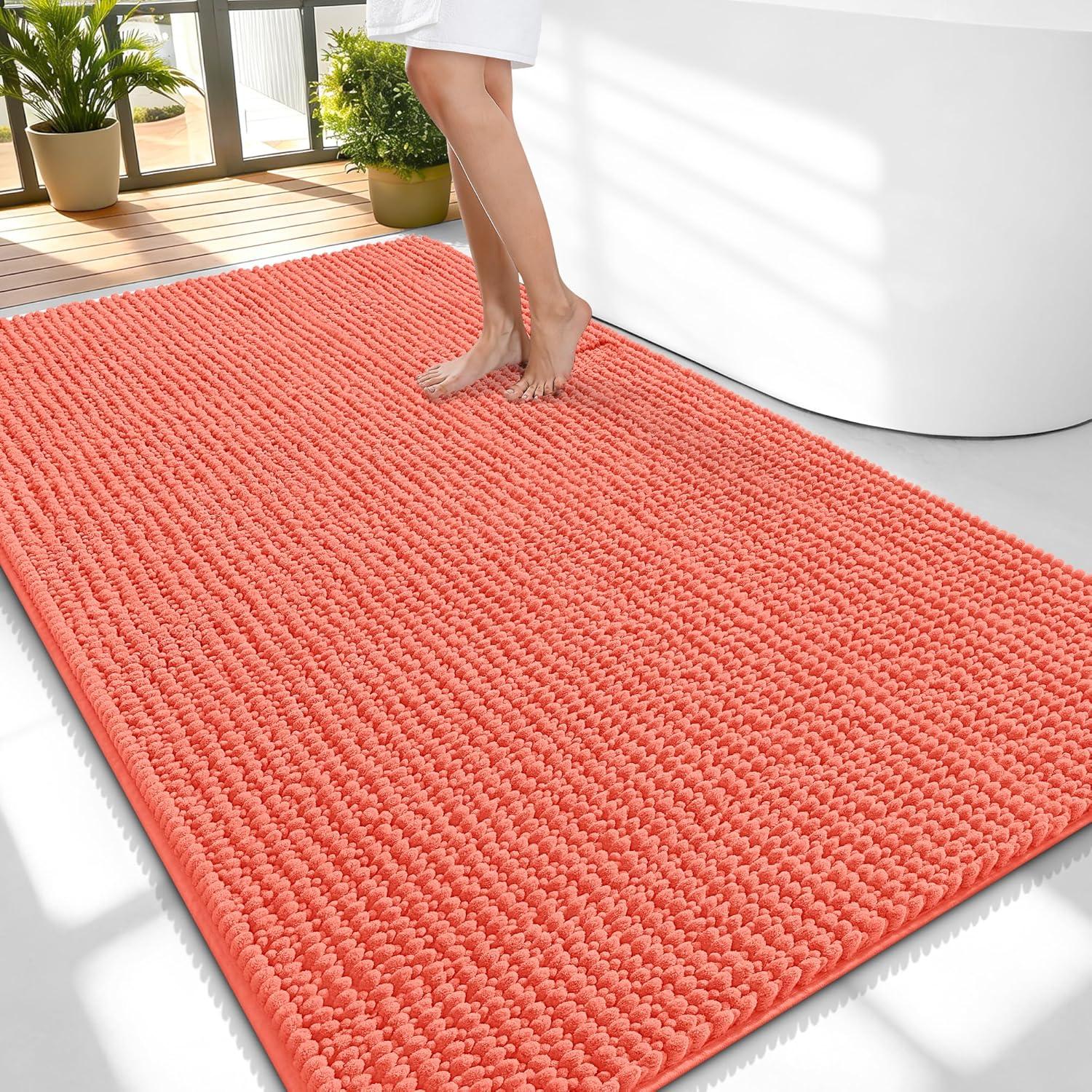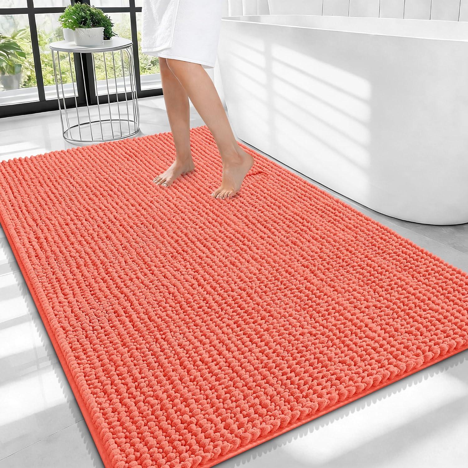 OLANLY Thick Bathroom Rugs 30×20, Extra Soft Absorbent Chenille Bath Rugs, Rubber Backing, Machine Wash Dry, Bath Mats for Bathroom Floor, Tub and Shower, Home Decor Accessories, Grey(Coral)