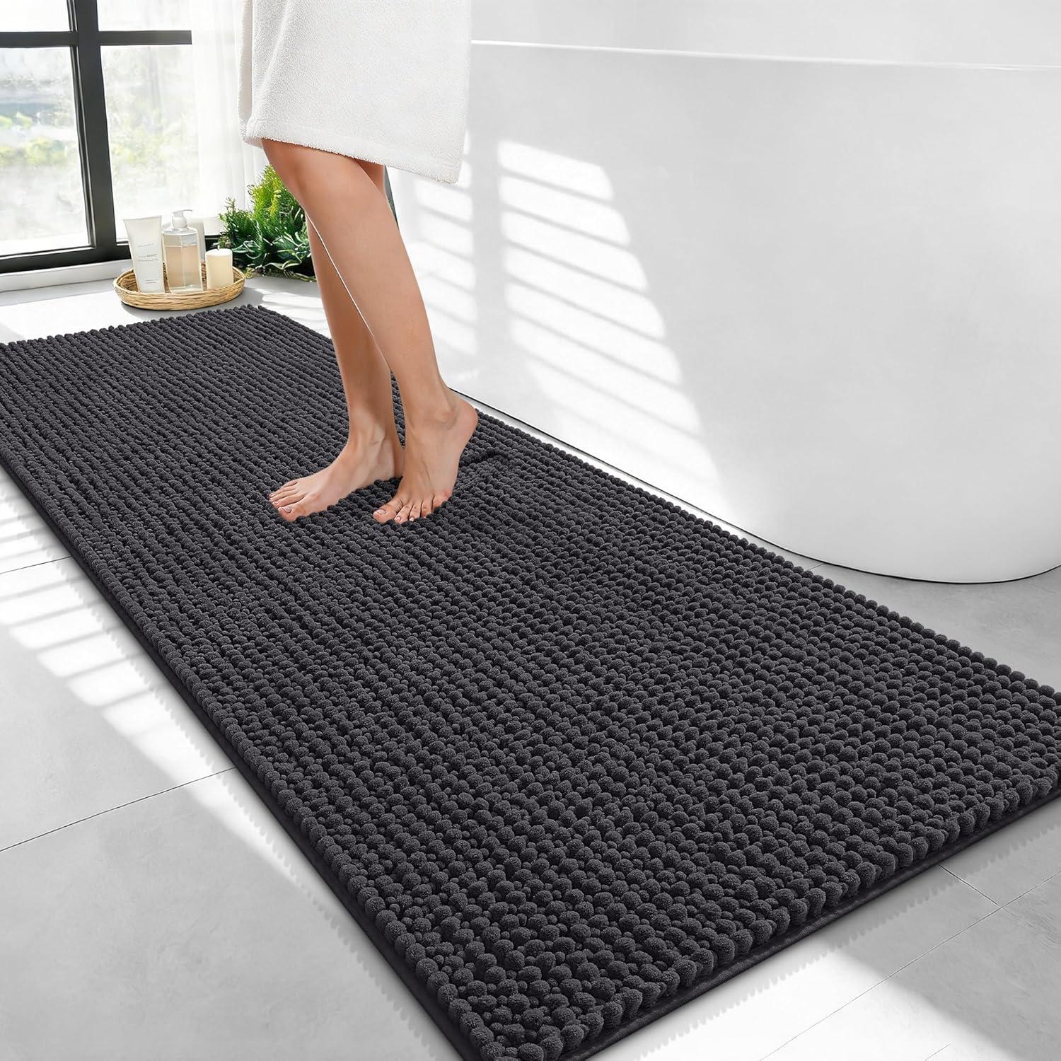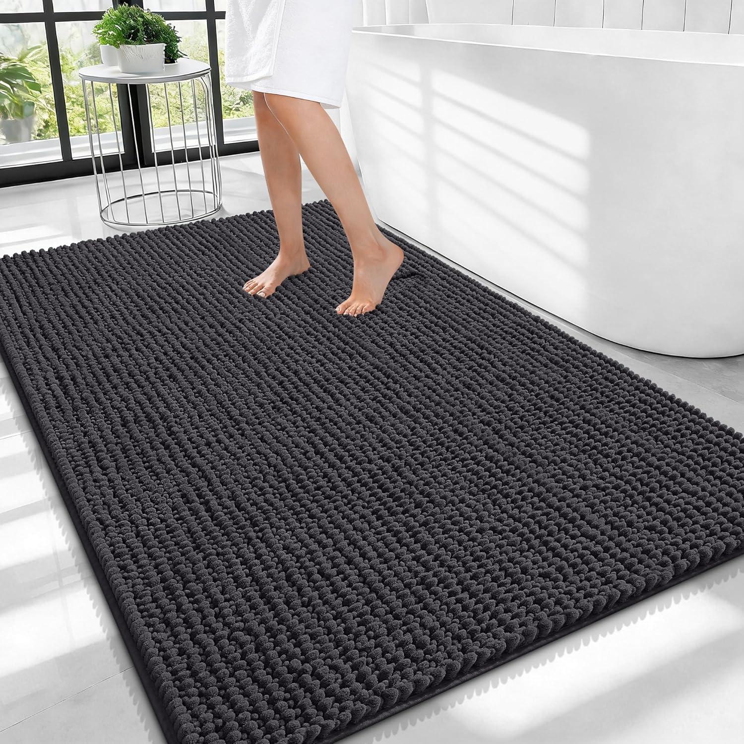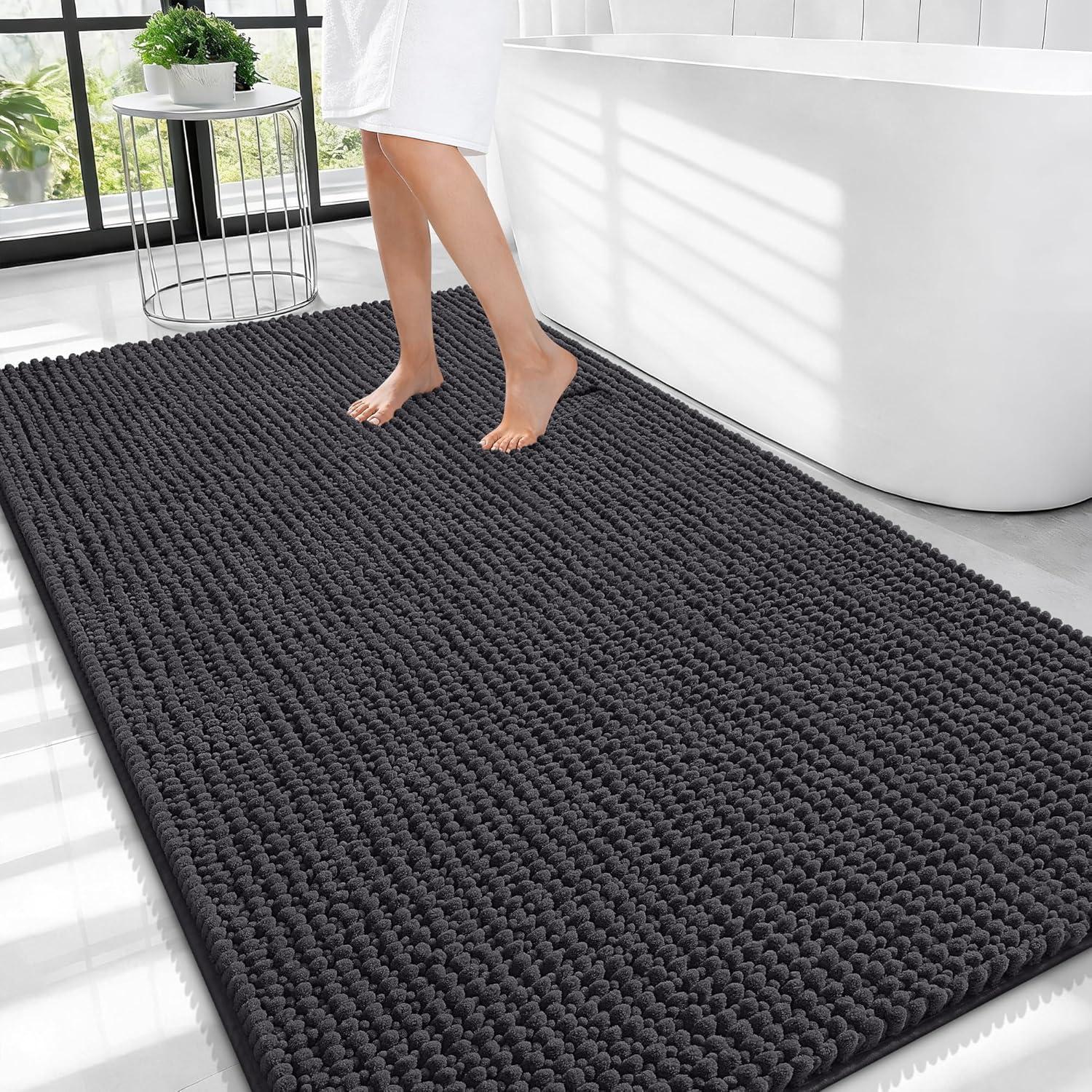 OLANLY Thick Bathroom Rugs 30×20, Extra Soft Absorbent Chenille Bath Rugs, Rubber Backing, Machine Wash Dry, Bath Mats for Bathroom Floor, Tub and Shower, Home Decor Accessories, Grey(Dark Grey)