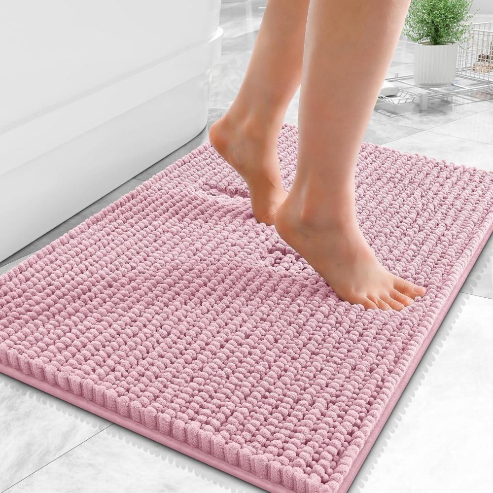 OLANLY Thick Bathroom Rugs 30×20, Extra Soft Absorbent Chenille Bath Rugs, Rubber Backing, Machine Wash Dry, Bath Mats for Bathroom Floor, Tub and Shower, Home Decor Accessories, Grey(Dusty Rose)