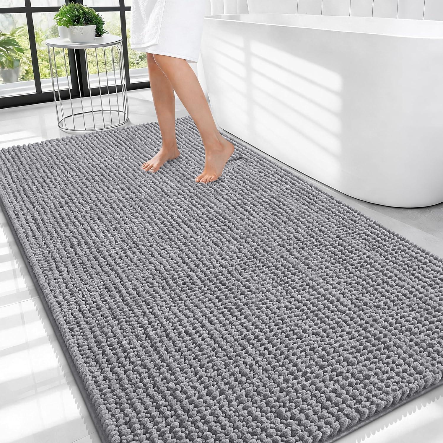 OLANLY Thick Bathroom Rugs 30×20, Extra Soft Absorbent Chenille Bath Rugs, Rubber Backing, Machine Wash Dry, Bath Mats for Bathroom Floor, Tub and Shower, Home Decor Accessories, Grey(Grey)