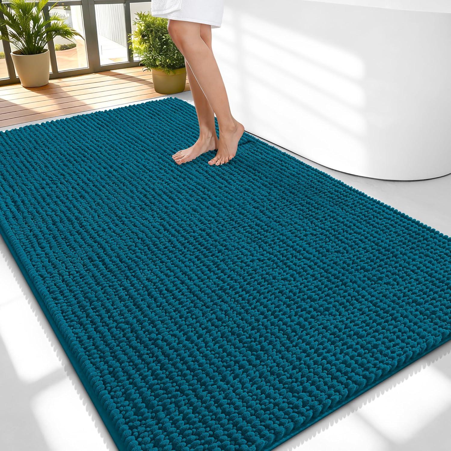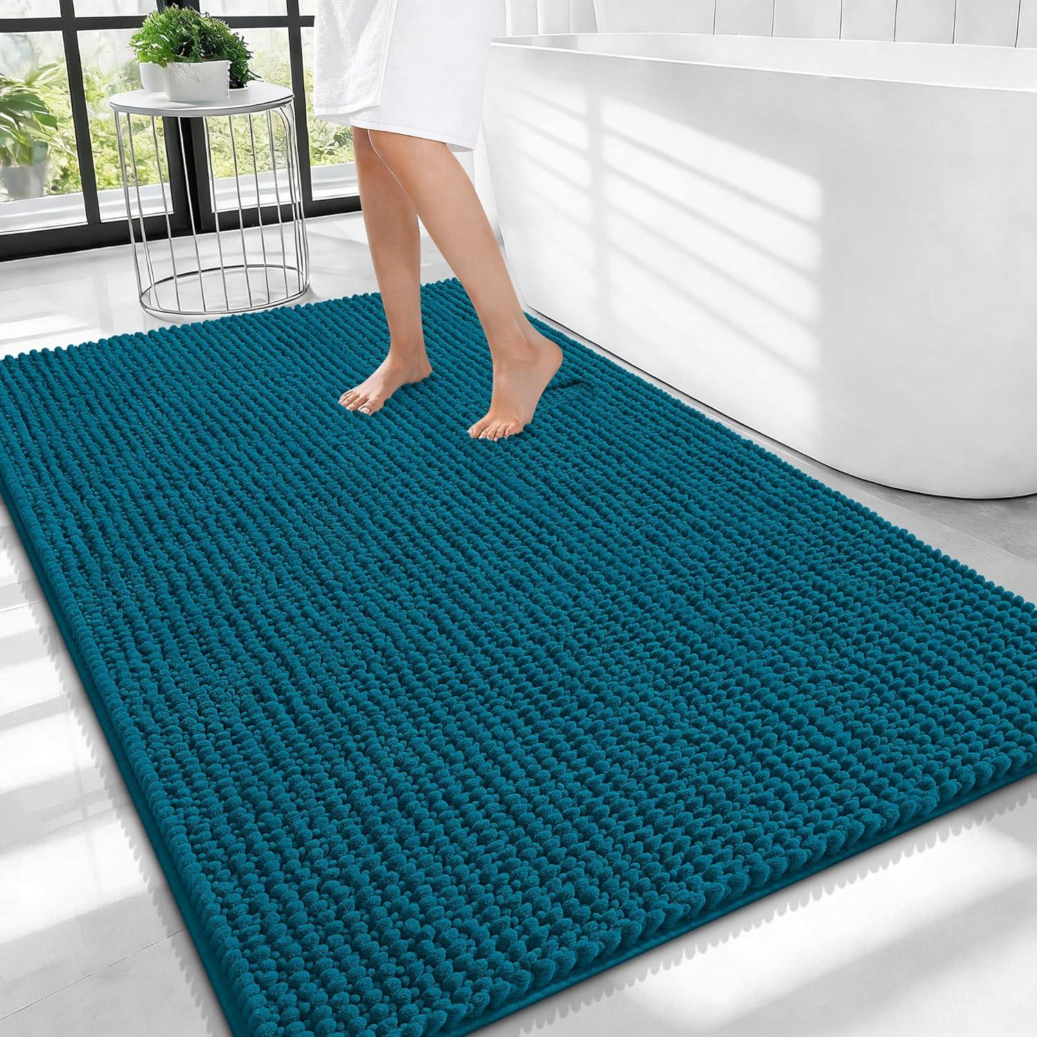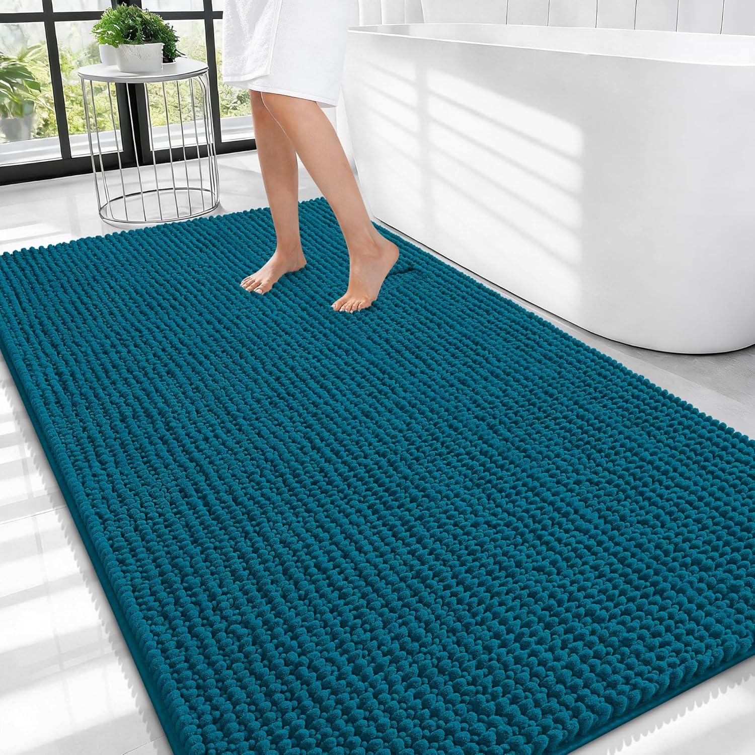 OLANLY Thick Bathroom Rugs 30×20, Extra Soft Absorbent Chenille Bath Rugs, Rubber Backing, Machine Wash Dry, Bath Mats for Bathroom Floor, Tub and Shower, Home Decor Accessories, Grey(Peacock Blue)