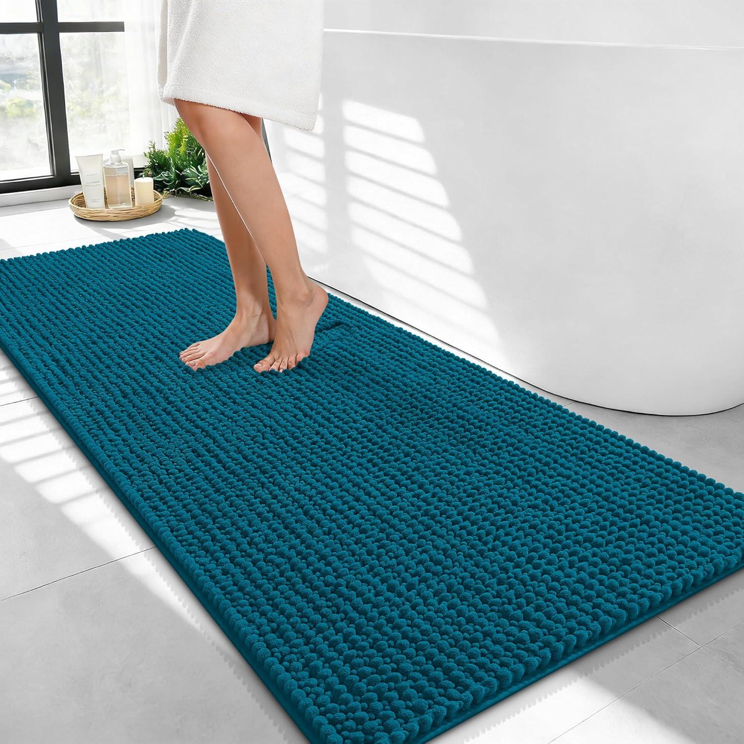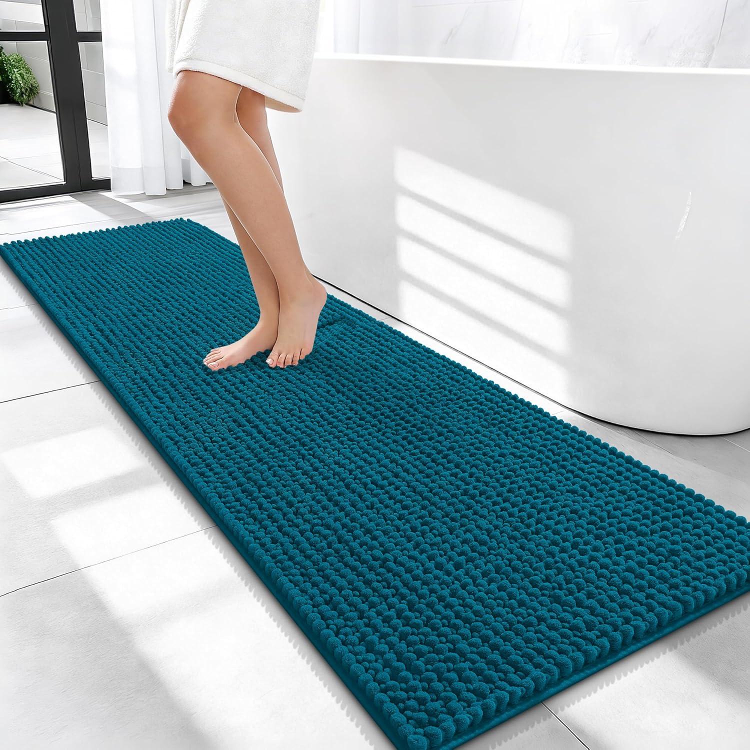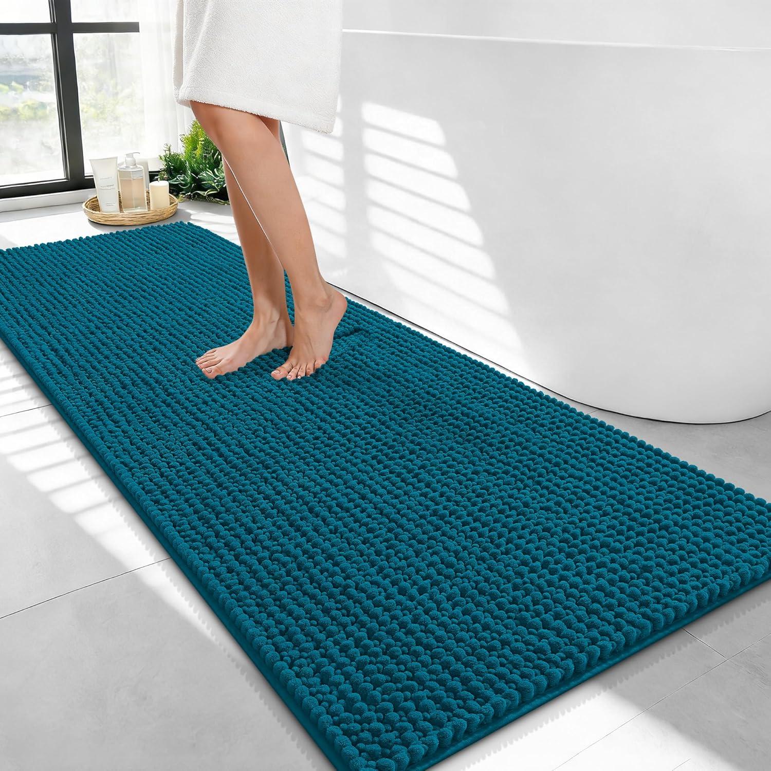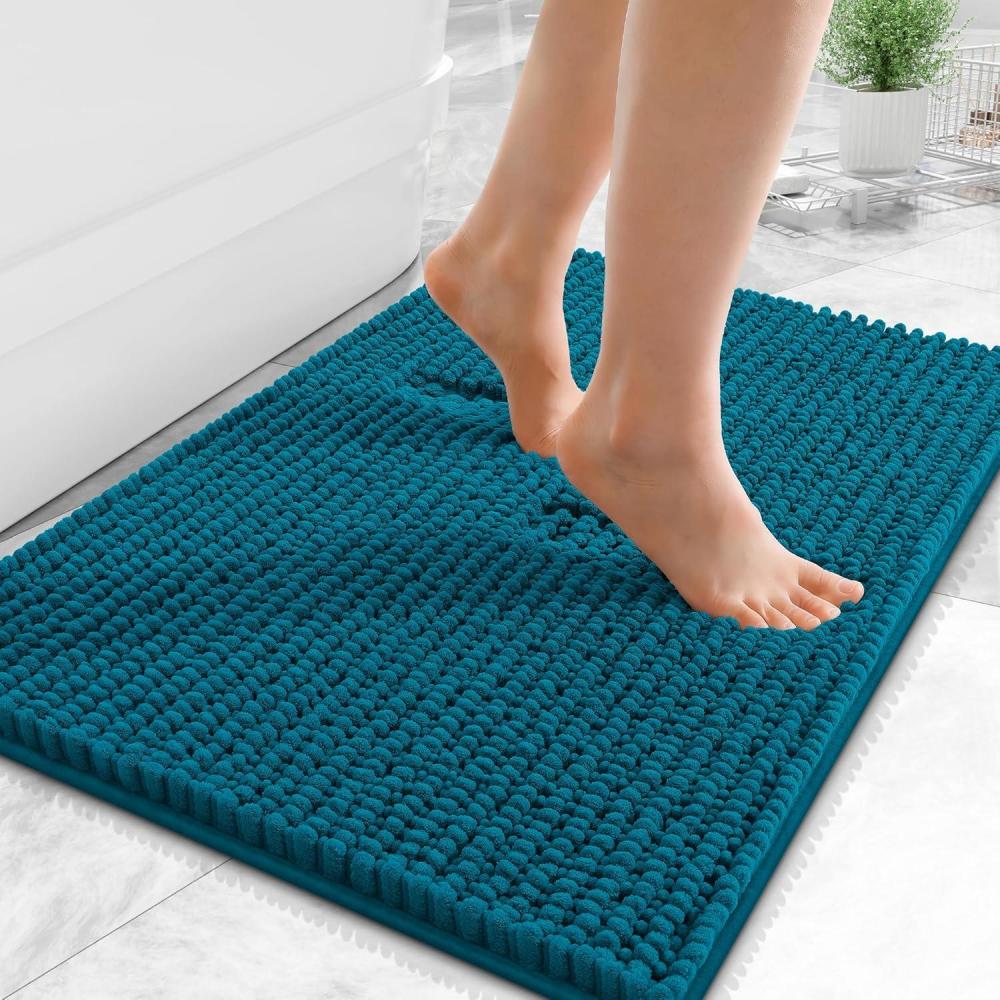 OLANLY Thick Bathroom Rugs 30×20, Extra Soft Absorbent Chenille Bath Rugs, Rubber Backing, Machine Wash Dry, Bath Mats for Bathroom Floor, Tub and Shower, Home Decor Accessories, Grey(Peacock Blue)